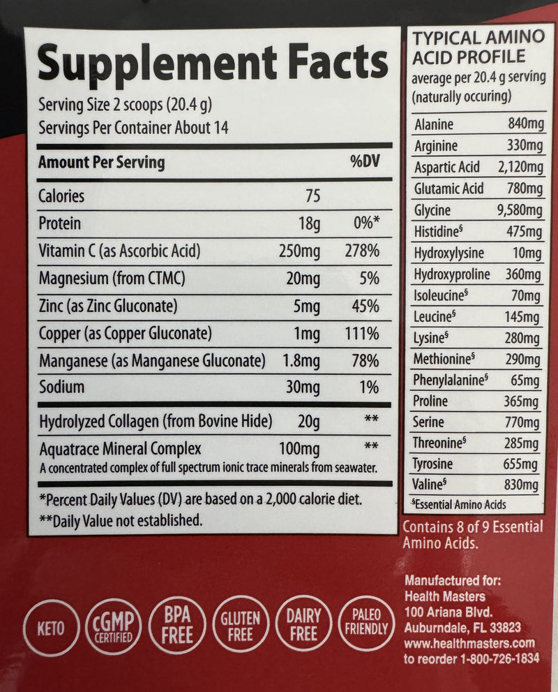 Delivers 20 grams of hydrolyzed collagen peptides for optimal absorption